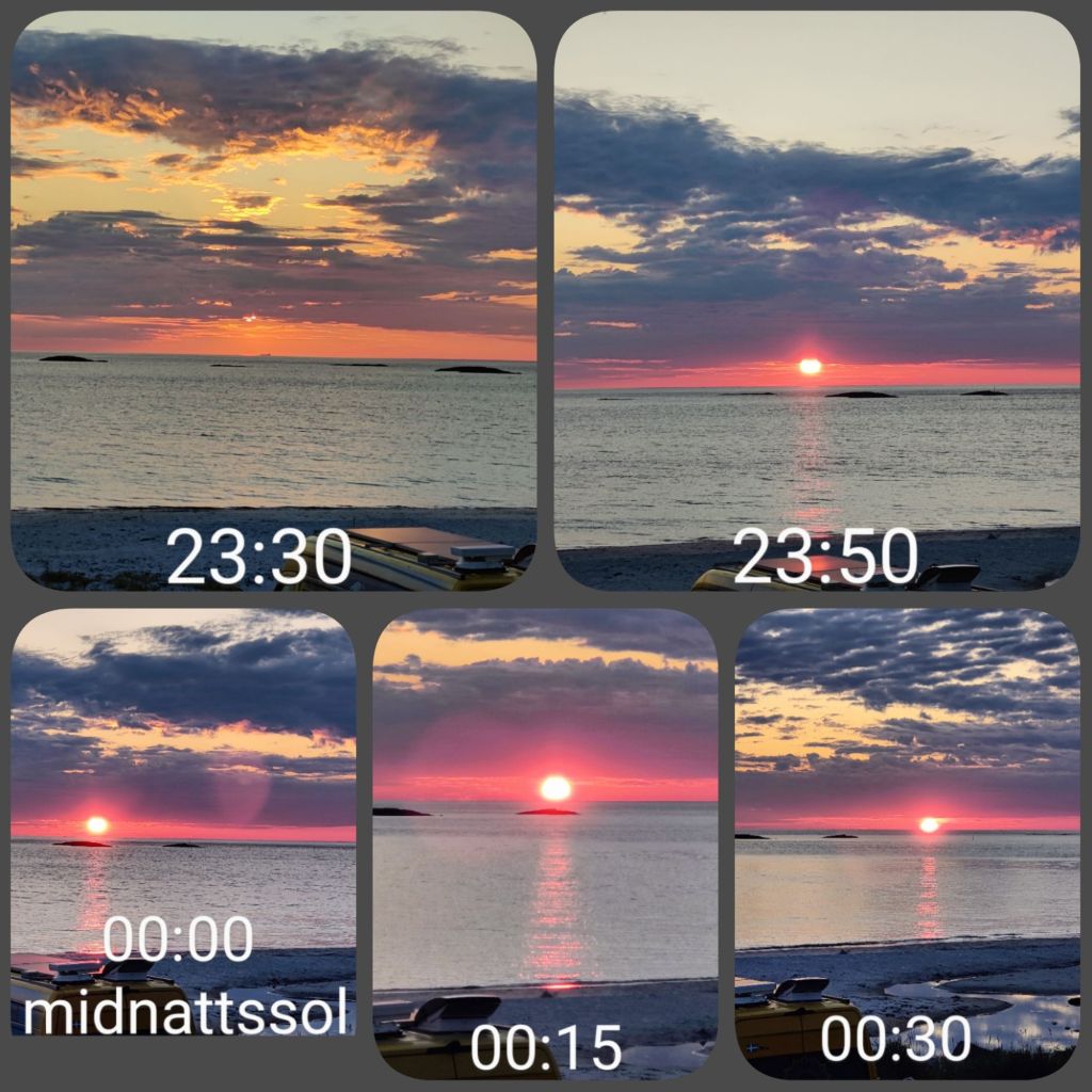 Ikväll var molnen mer på vår sida och vi kunde följa solen som aldrig går ner