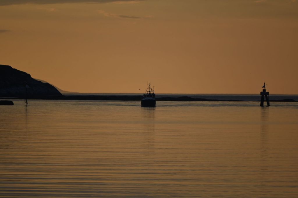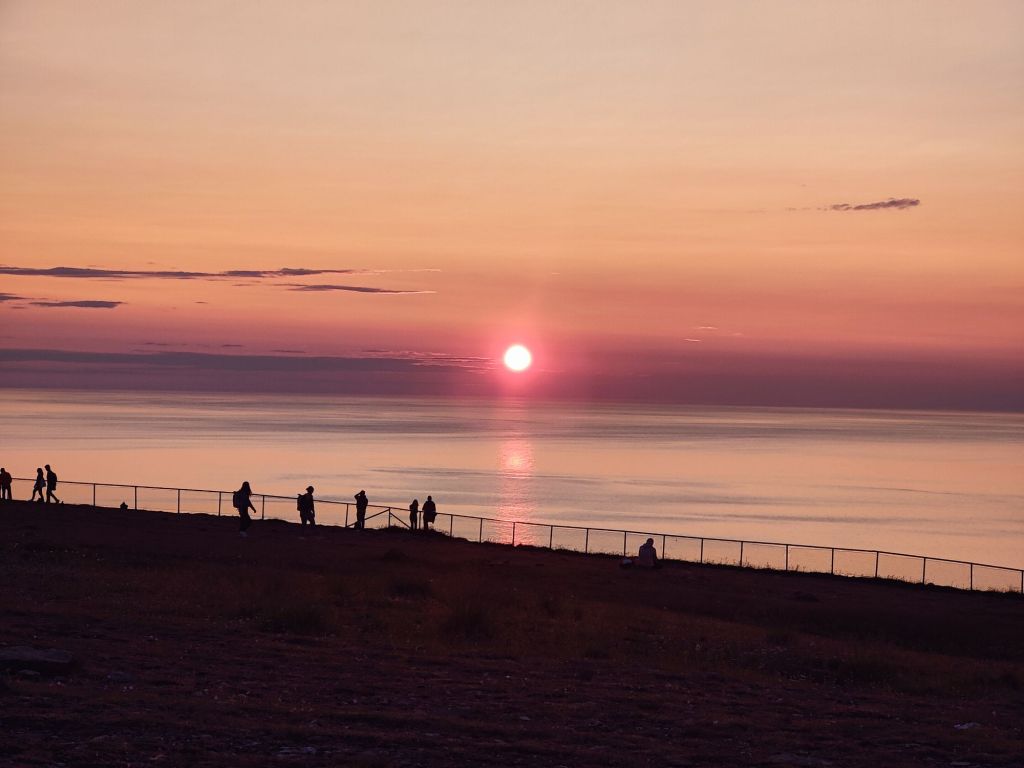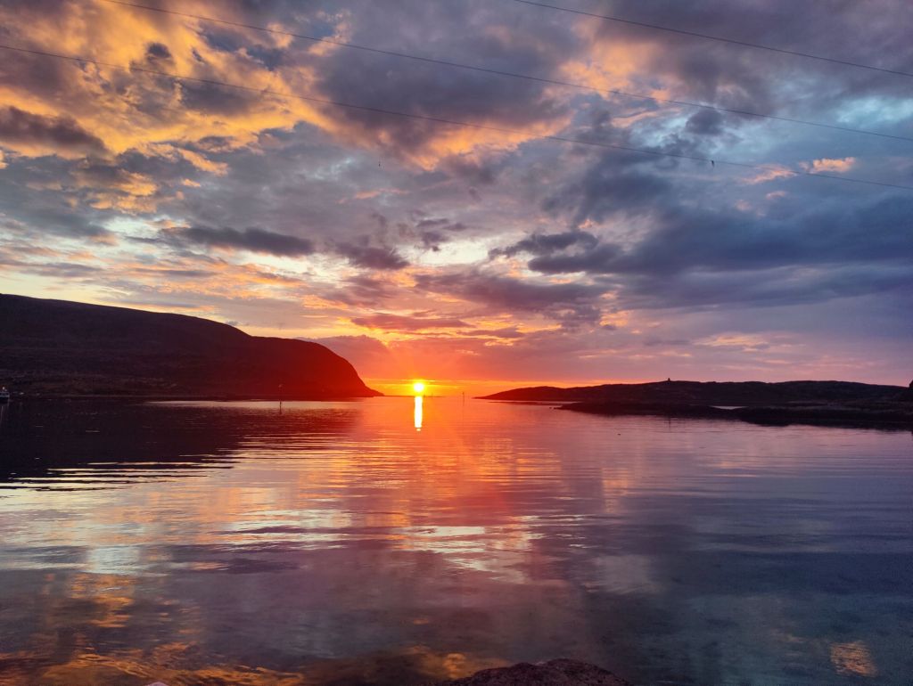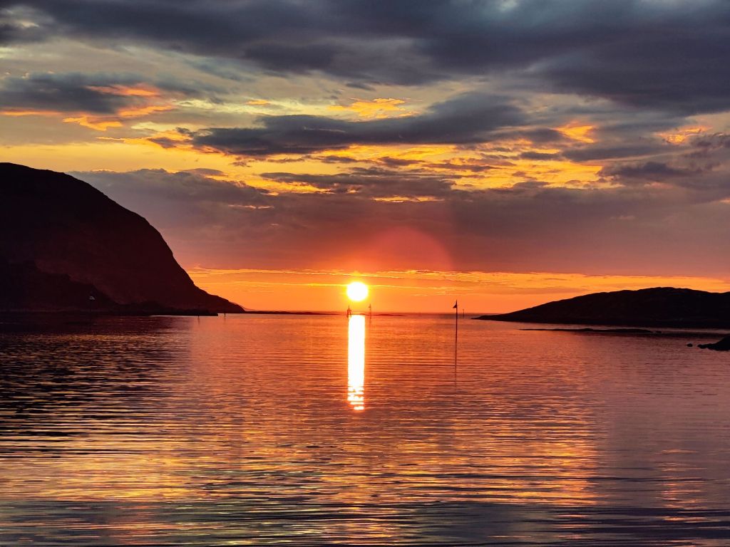 När vi fick tipset om denna plats så skulle man kunna se midnattssolen mitt i sundet klockan 00:00.