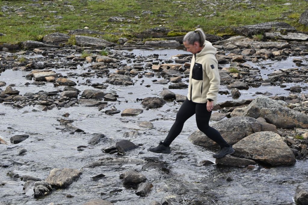 Vi följde stigen en bit, fick ta oss över lite vatten, vilket var lite knixigt utan att bli blöt, men det gick.