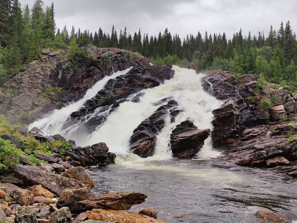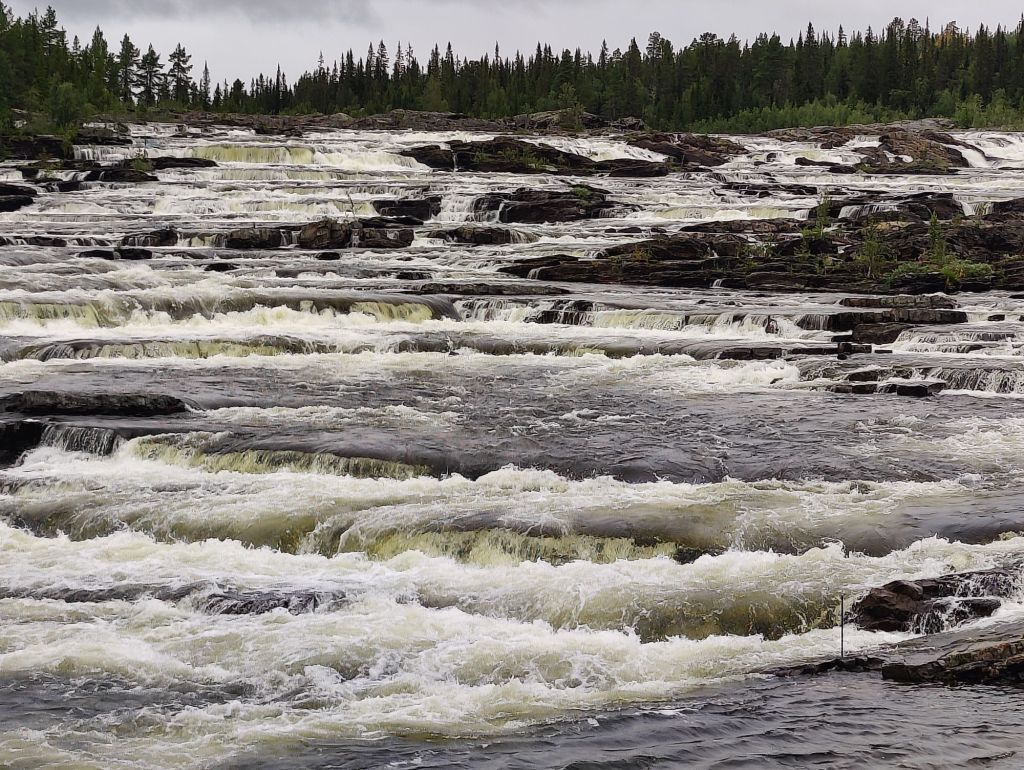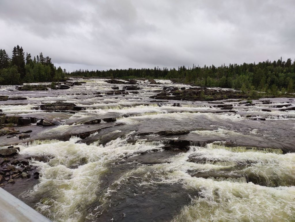 Vi fortsätter med vattentemat lite till. Efter ett par mil kom vi in på Vildmarksvägen och tog ett stopp vid trappstegs forsen.