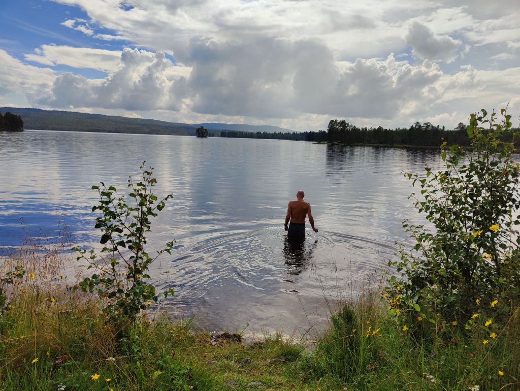Att kunna tvätta sig i sjön är ju pricken över i:et. Efter att grillat till kvällsmat blev det blankt vatten och vi tog åter igen en tur på SUParna.