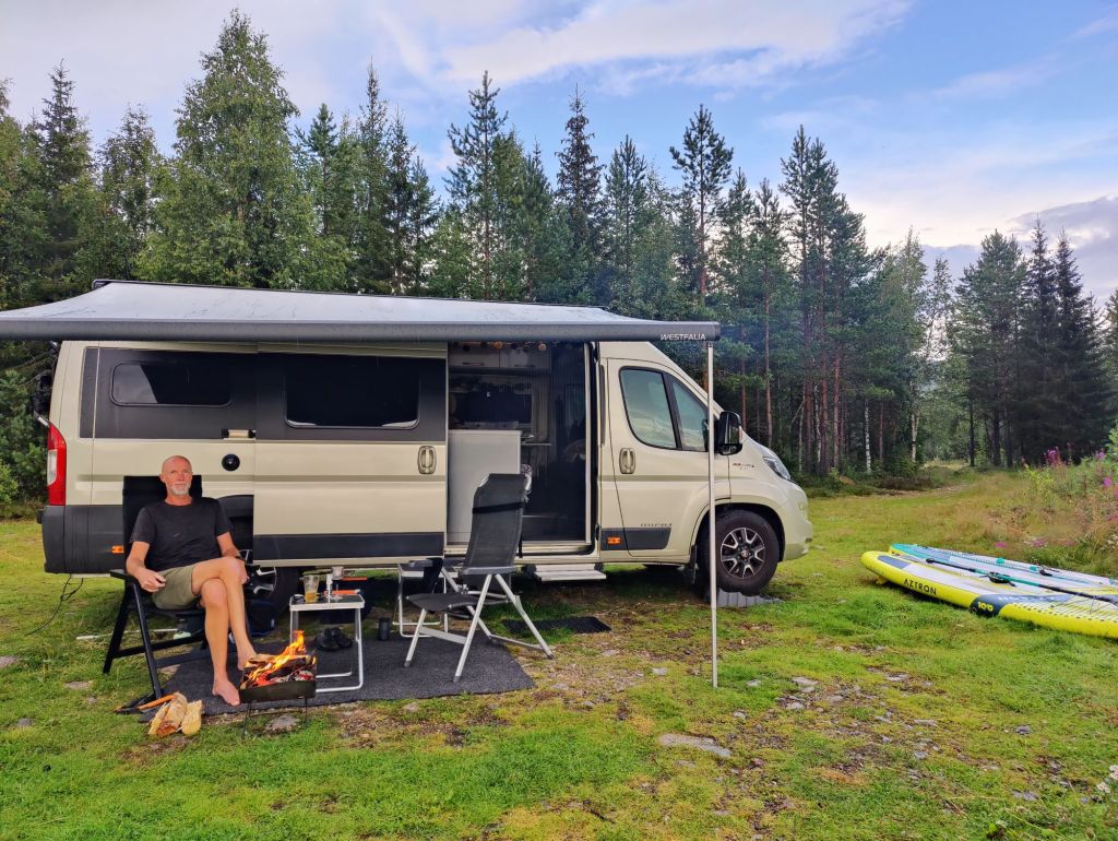 Solen sken med rätt var det var kom en kort regnskur men med markisen gjorde det inget. Lite träning, fiske, läsning, brasa och os så var dagen helt underbar.