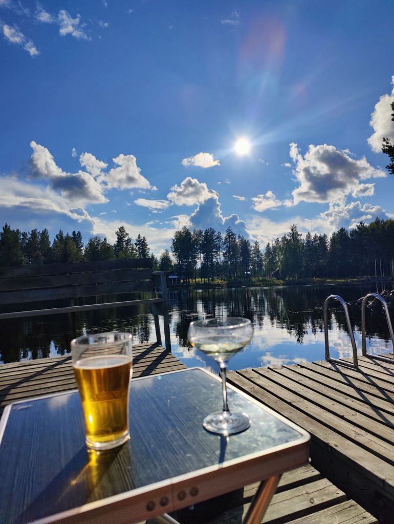Sen blev sen lite go avkoppling på bryggan med lite gott i glasen.
