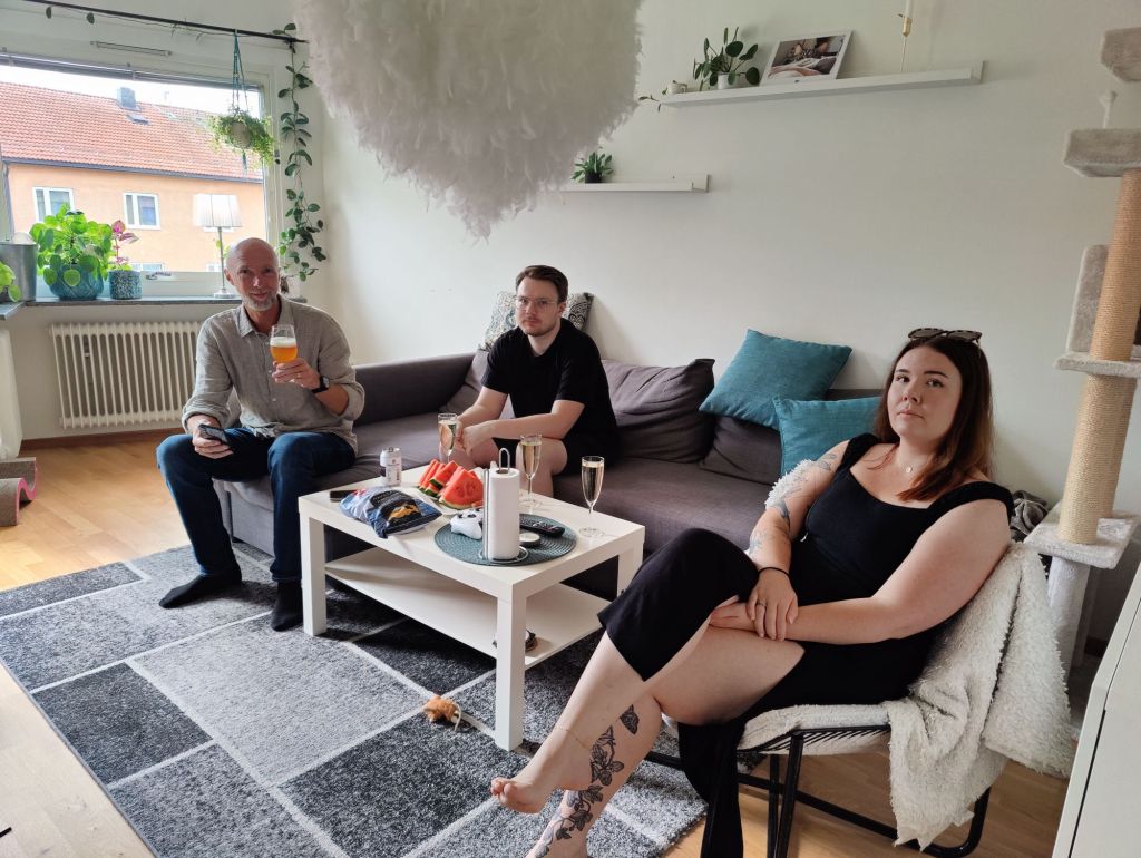 Emelie hämtade oss för att börja kvällen med semifinal i damhandbollen.