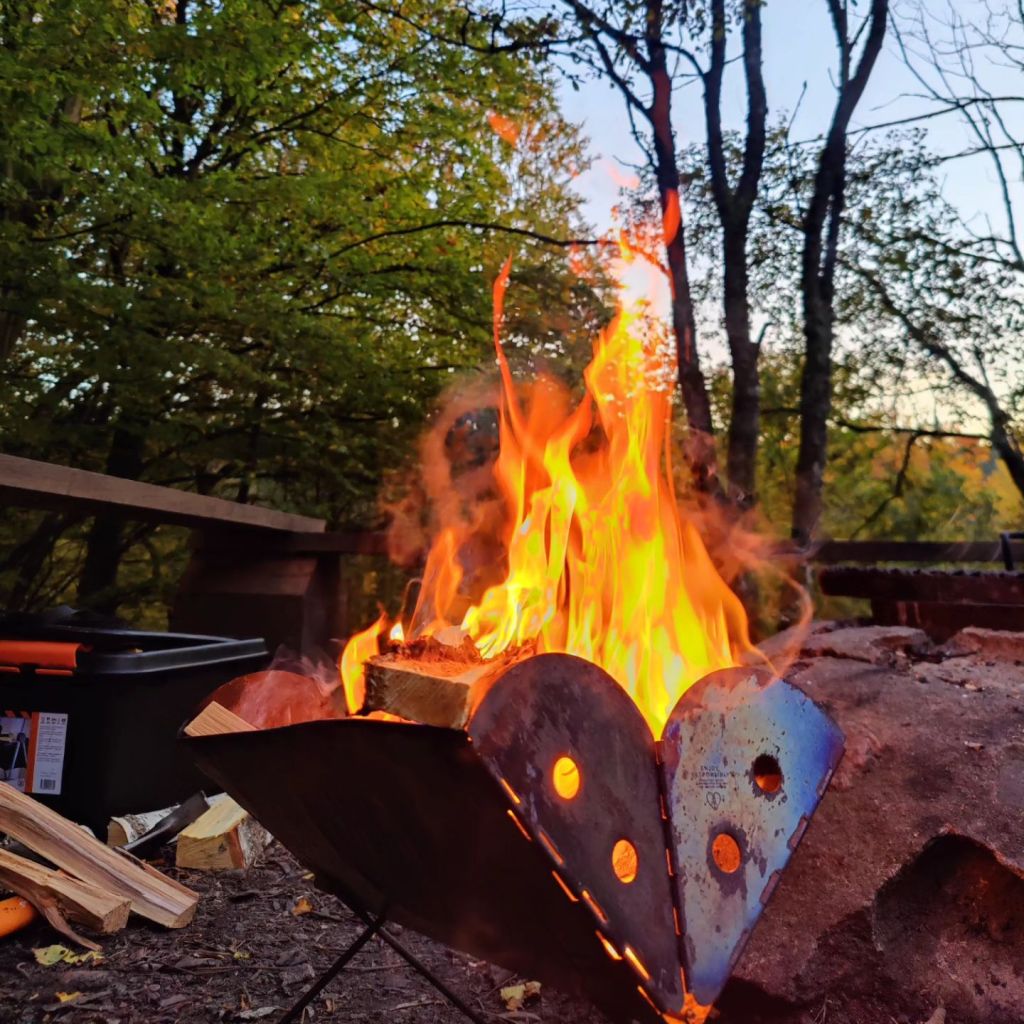 Vi åkte till tre olika platser, till allt hör att det knappt fanns något nät att tala om. Skulle vi klara oss utan TV och mobil? Tillslut blev det klåveröds parkering och vi hittade ett ställe med tillräcklig täckning. Efter att vi hade bestämt oss blev det en brasa.