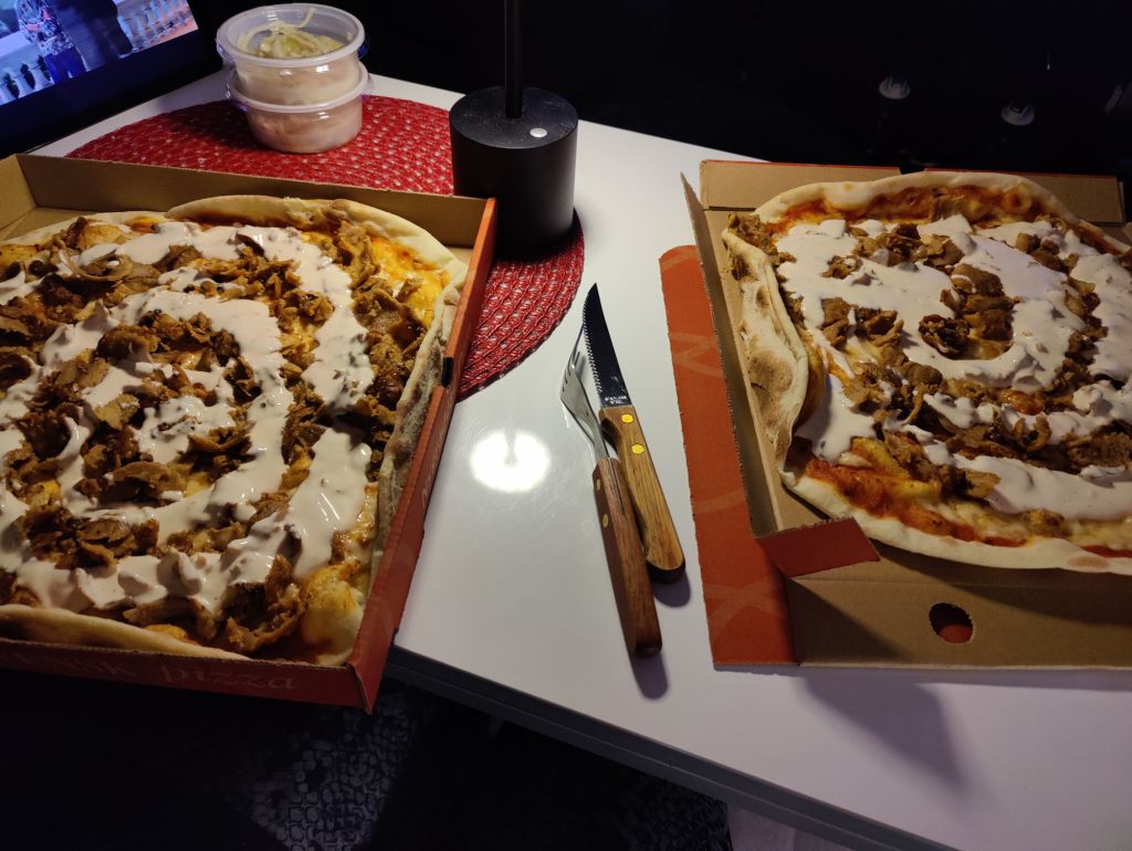 Det var ju 1 januari vilket innebär pizzadag. Det hade vi tänkt på när vi valde platsen, vi hade kollat att det fanns en pizzeria nära.