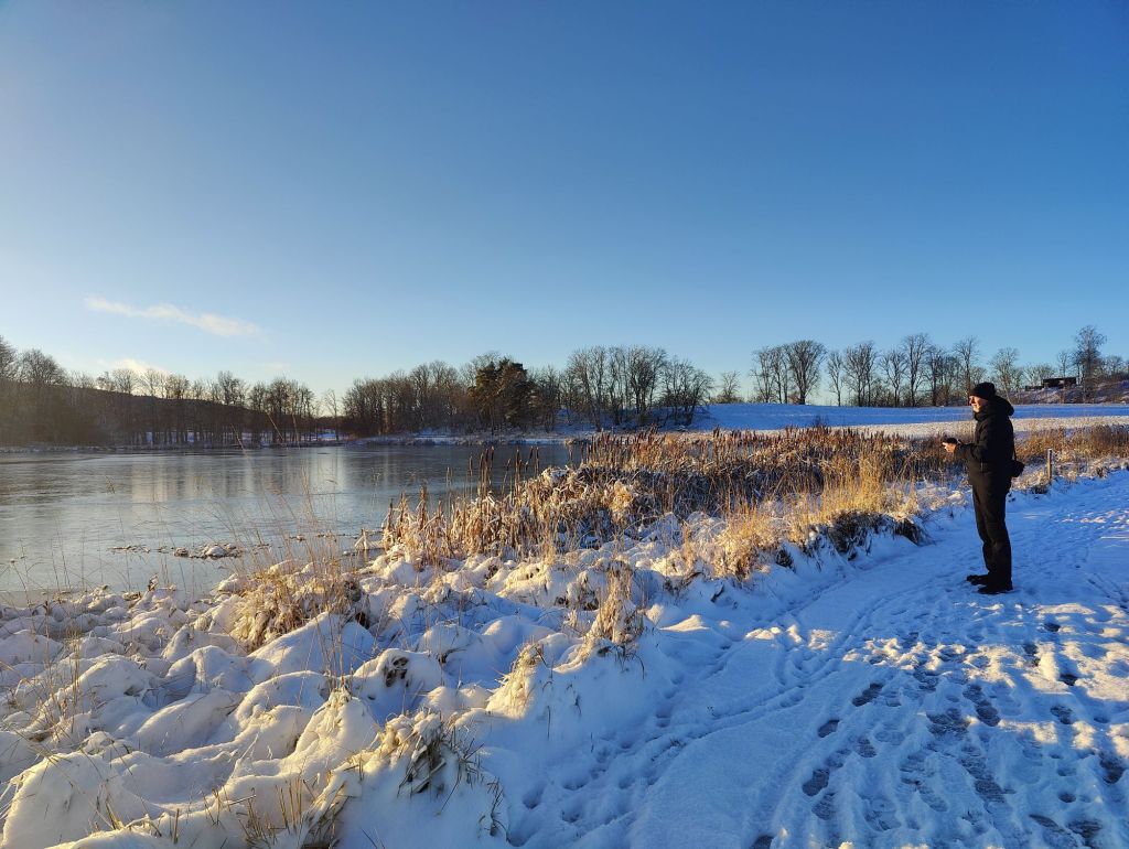 Vi gick runt Åsbotorpsjön och vidare och rundade Hållsdammen. Ca 5 km pulsande i snö är ganska jobbigt men det var en härlig dag.