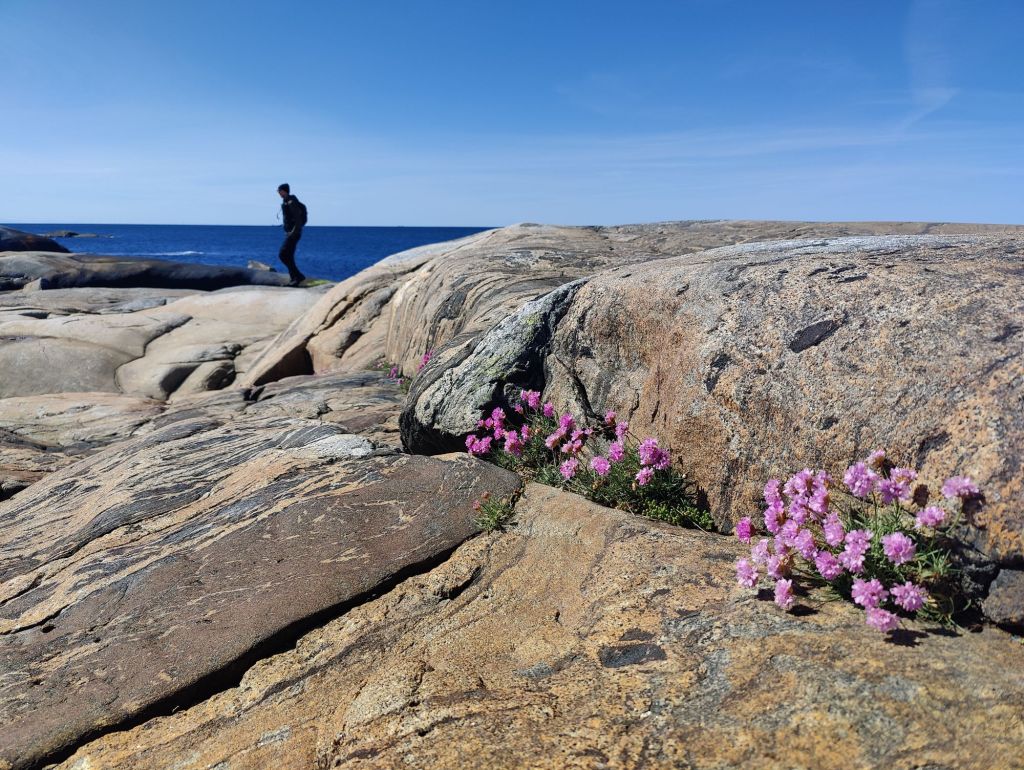 Lite kyliga vindar var det men vi gav oss iväg med cykel till Hönö för att vandra på klipporna.