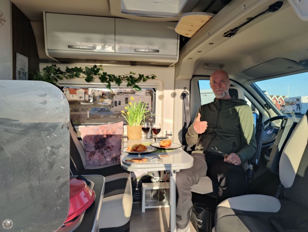 Nu hade vi varit tillräckligt aktiva under dagen och kunde mysa utanför husbilen resten av eftermiddagen.