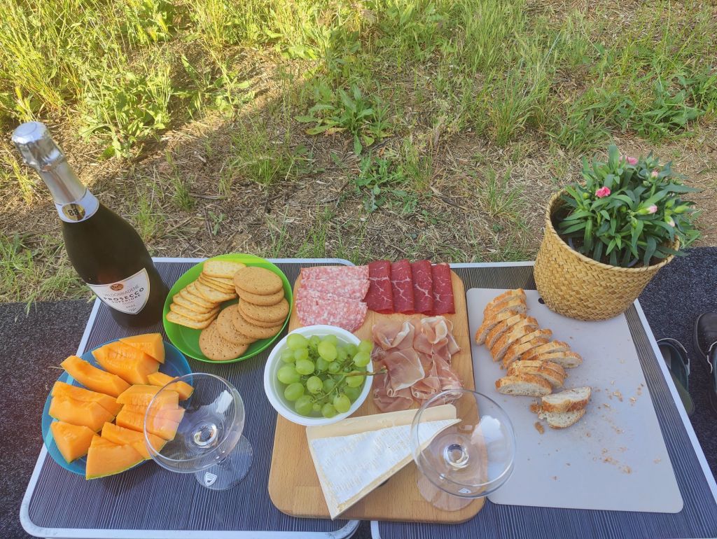 Vi avslutade kvällen med bubbel och charkbricka vid bilen.