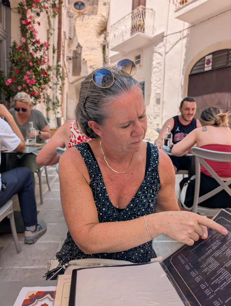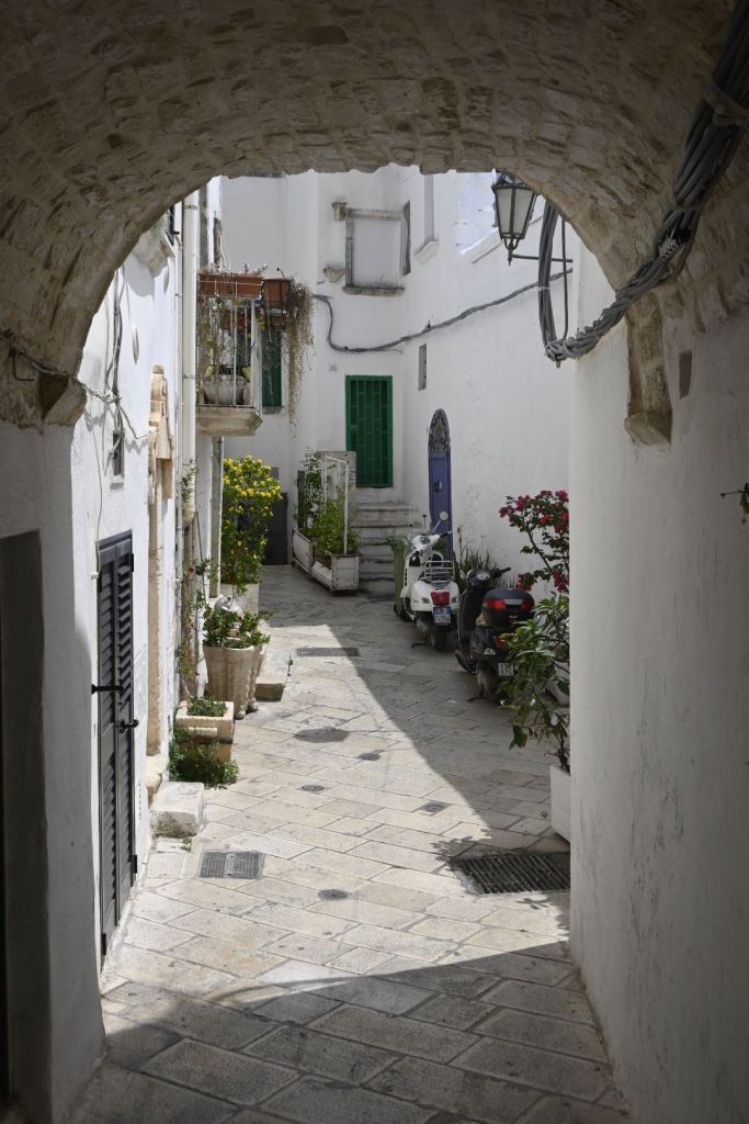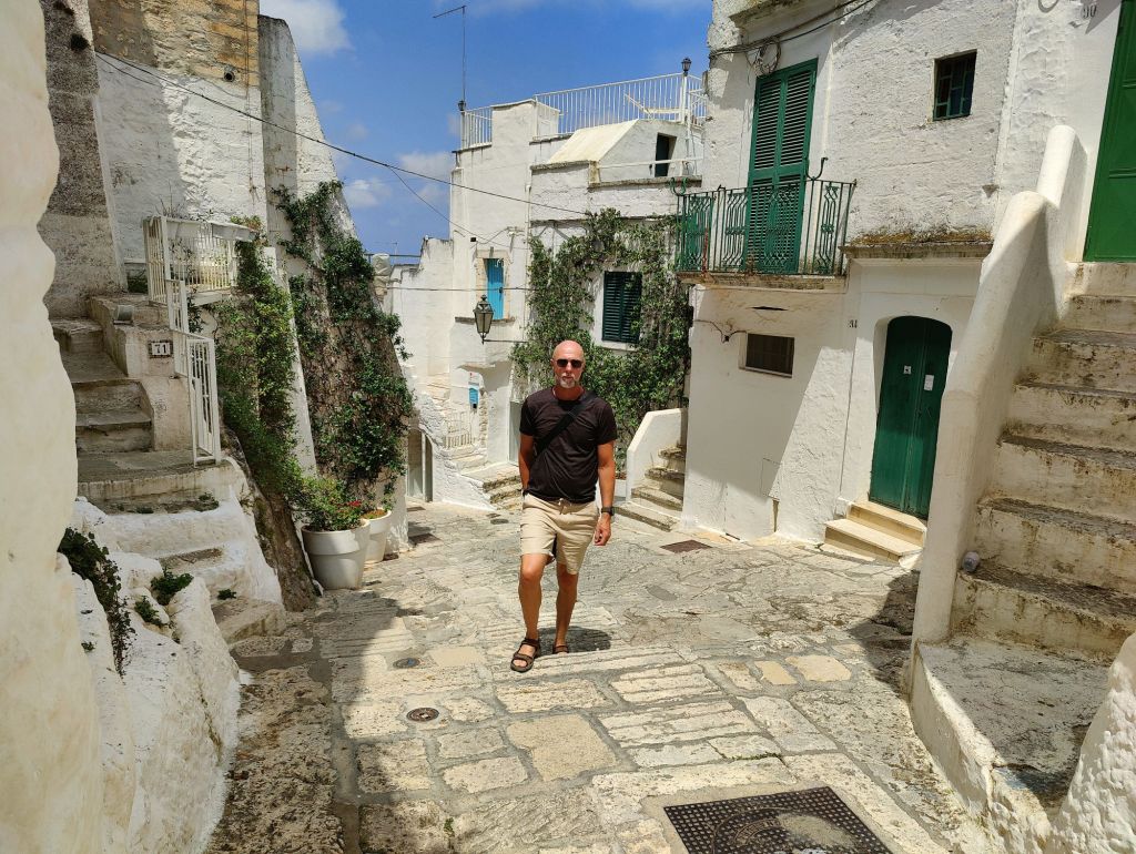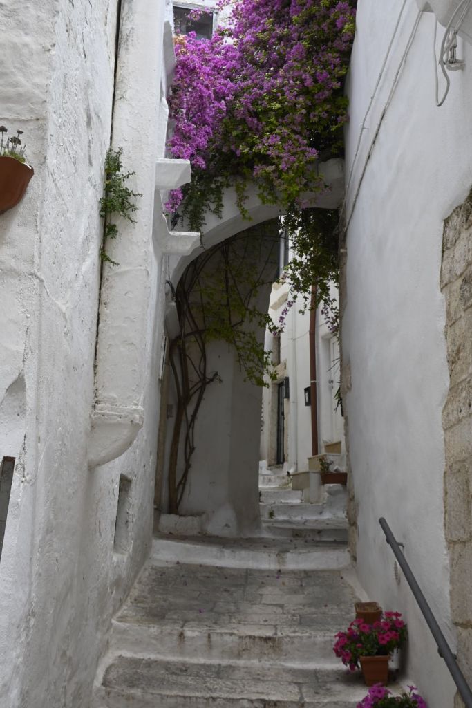 Nästa stopp blev Ostuni, den vita staden. . Den historiska stadskärnan är känd för sina smala kullerstensgator och vitkalkade hus med karakteristiska blå dörrar och fönsterluckor.