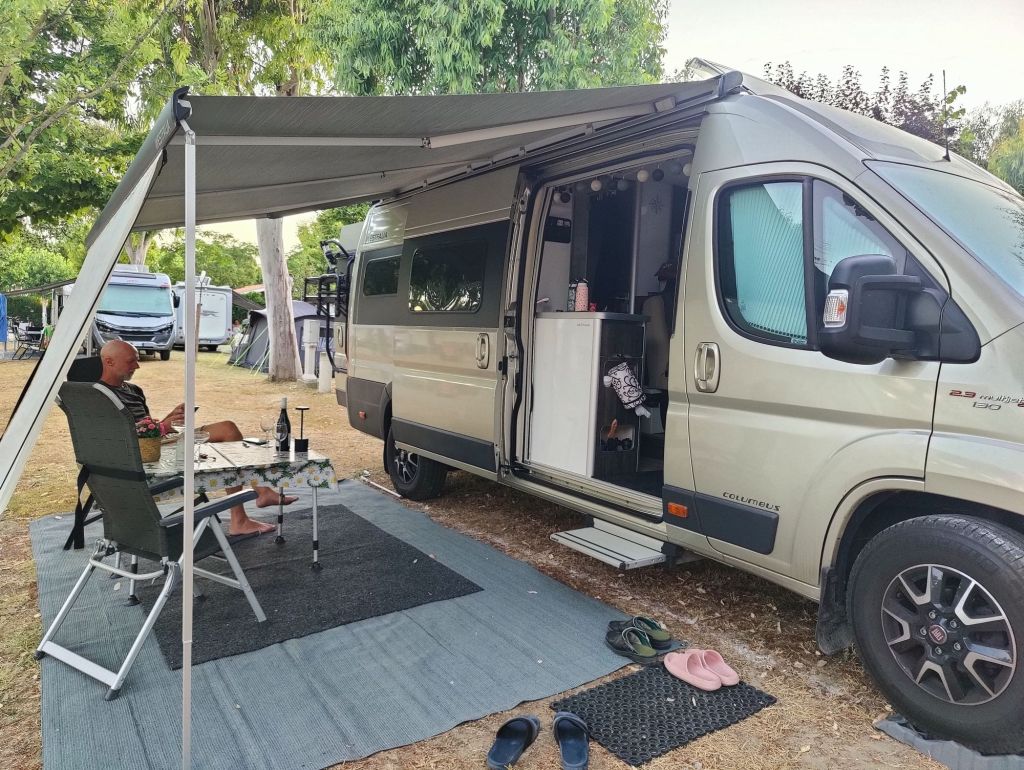 Även om vi är svettiga, klibbiga och lite trötta på värmen så ska vi försöka njuta några dagar till, vi vet ju vad som väntar längre norrut. Så nu har vi åkt några mil till och hamnade på samma ställplats som på ner vägen, strax norr om Rimini.