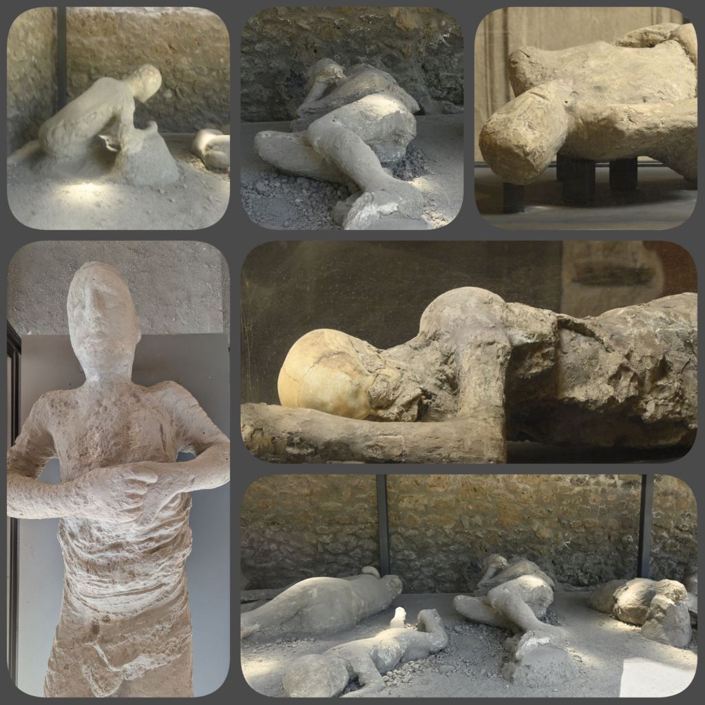 Vid utgrävningar har man hittat håligheter efter människor, dessa har fyllts och på så sett har man fått fram hur folket legat vid olyckan.