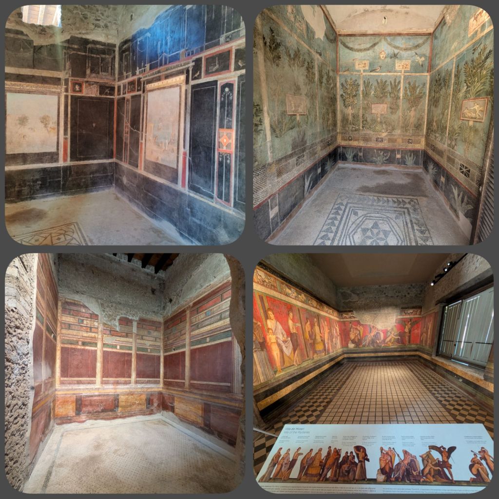 Många väggmålningar har hittats och även fina mosaikgolv.